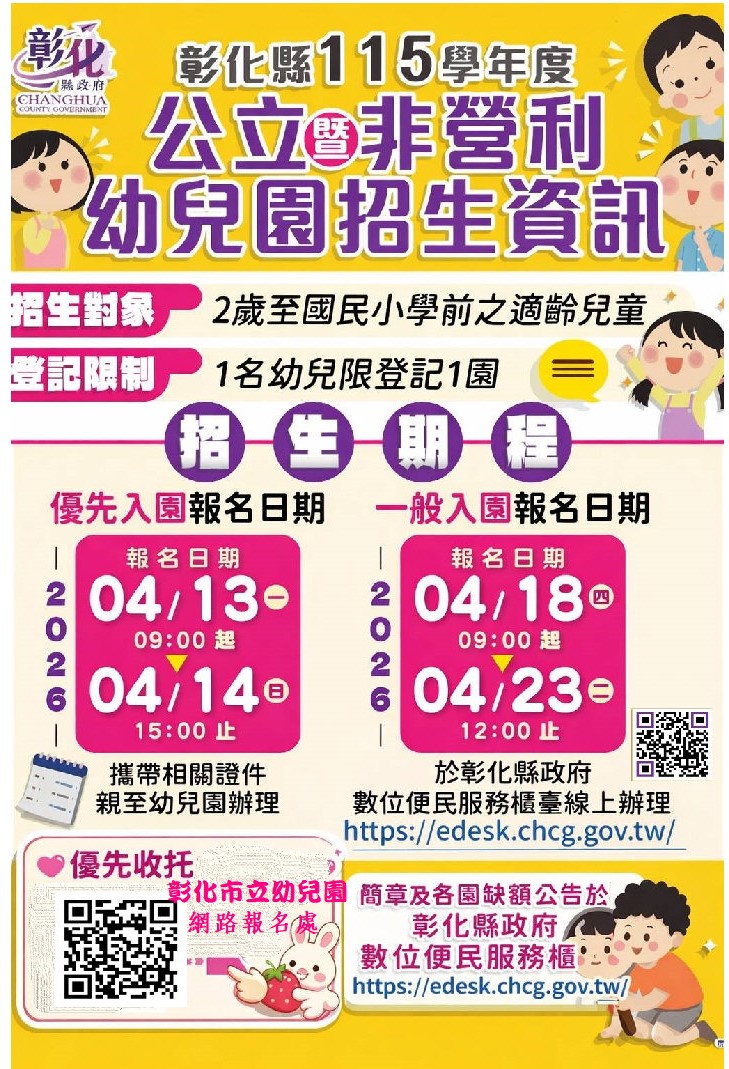 幼幼班:民國112年9月2日至民國113年9月1日出生者。