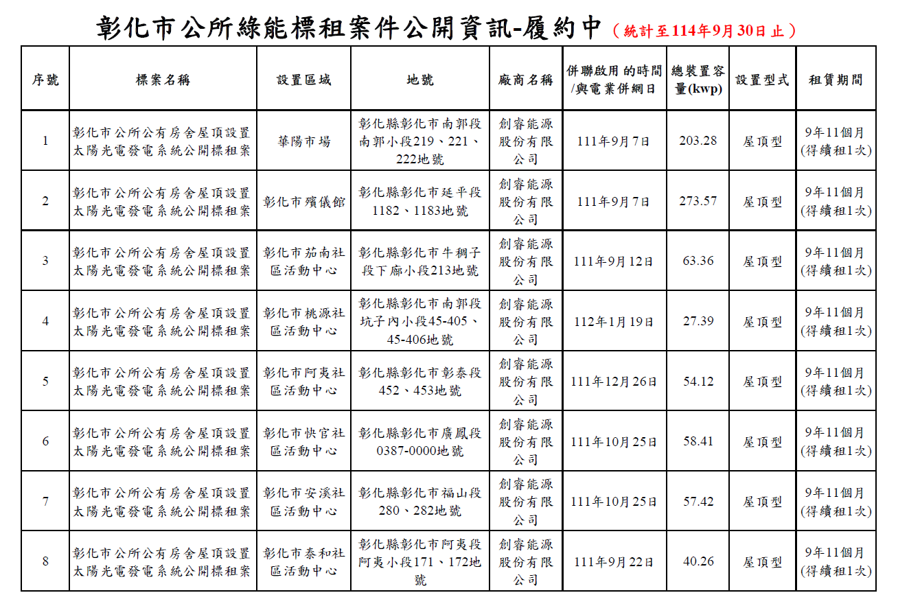 • 彰化市公所綠能標租案件公開資訊-履約中