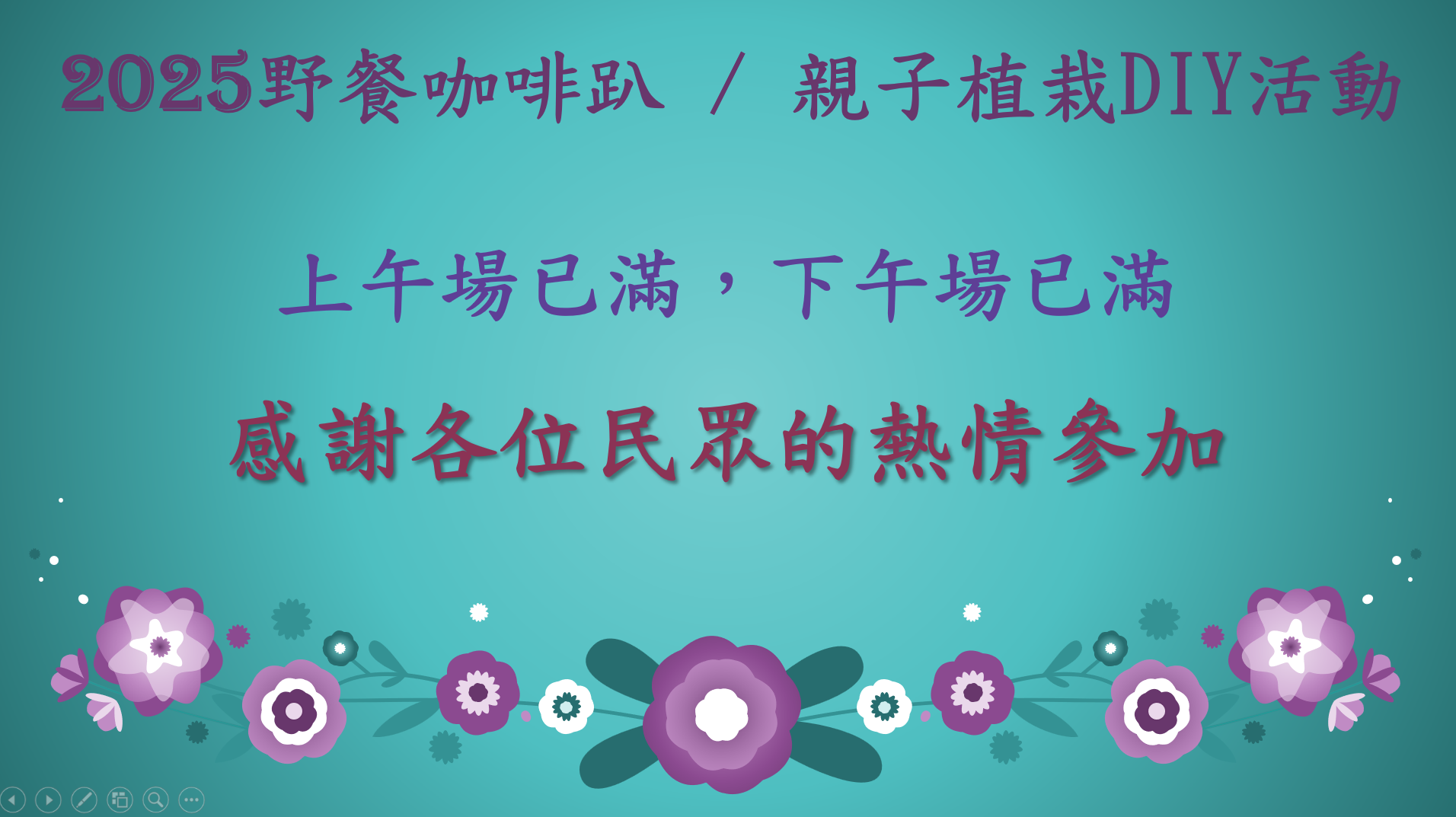 上午場、下午場皆已額滿,感謝各位民眾熱情參與