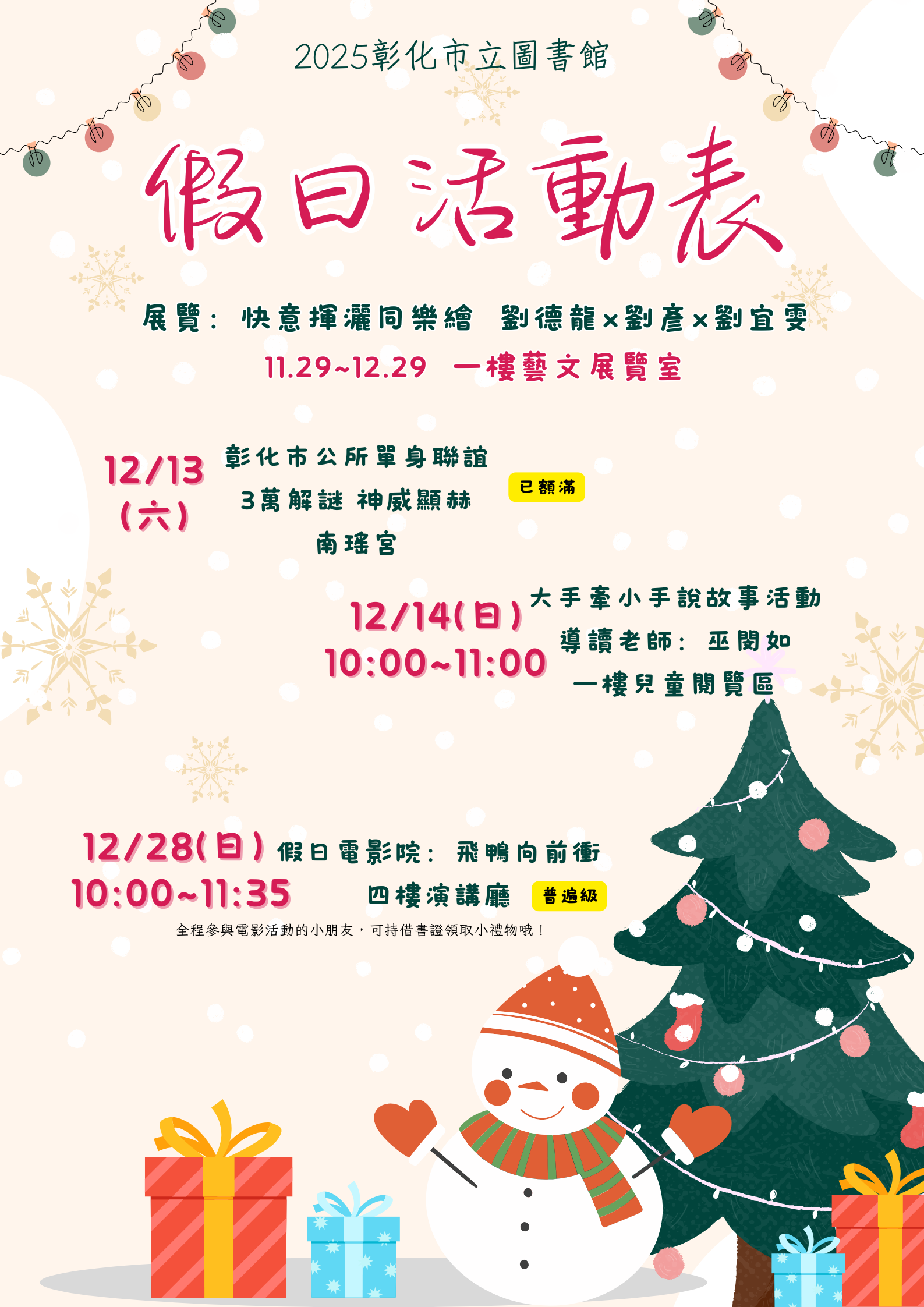 【2025 彰化市立圖書館*12 月假日活動開跑!】
