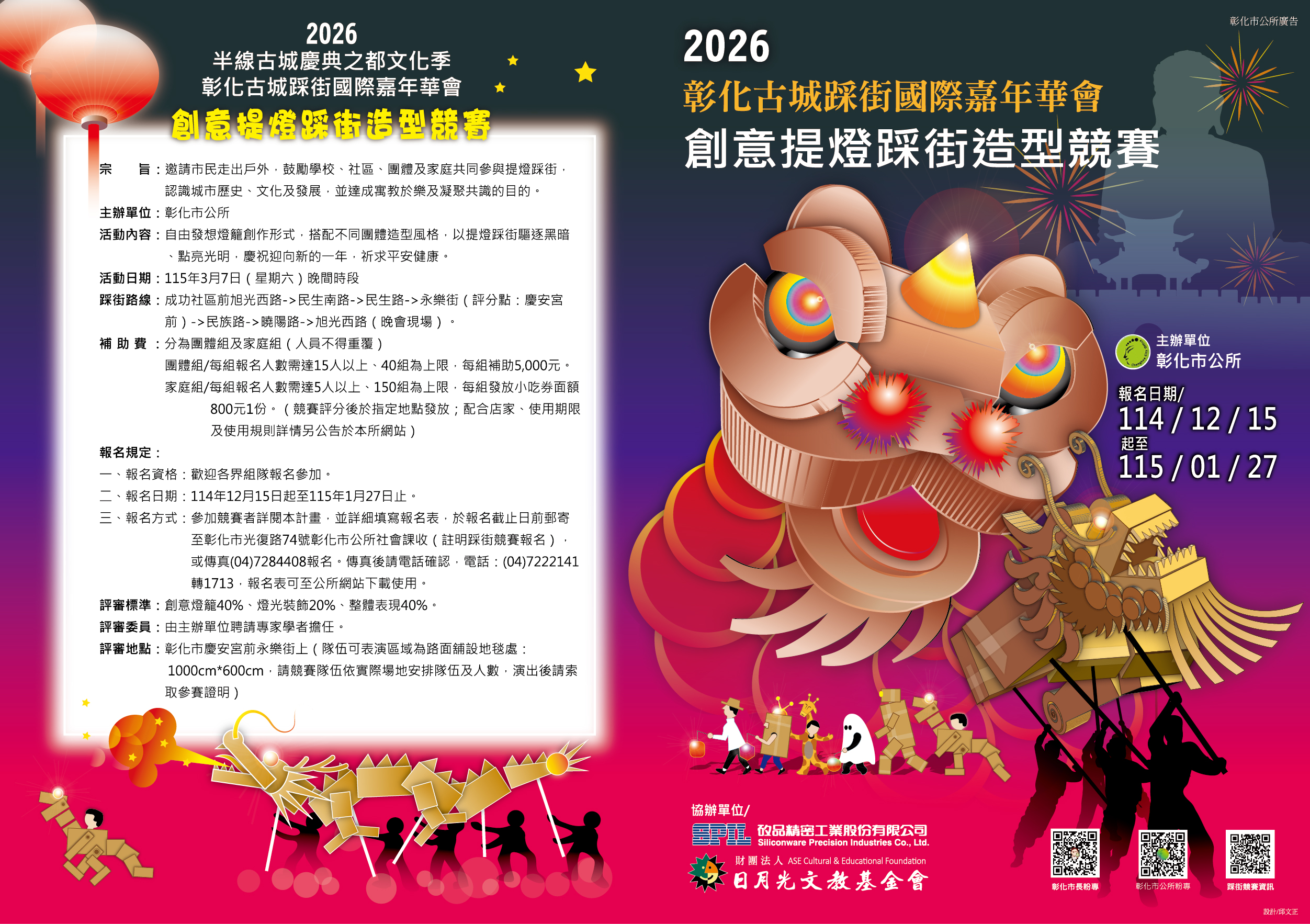 十、活動洽詢電話04-7222141分機1713、傳真04-7284408、彰化市公所網址:https://www.changhua.gov.tw