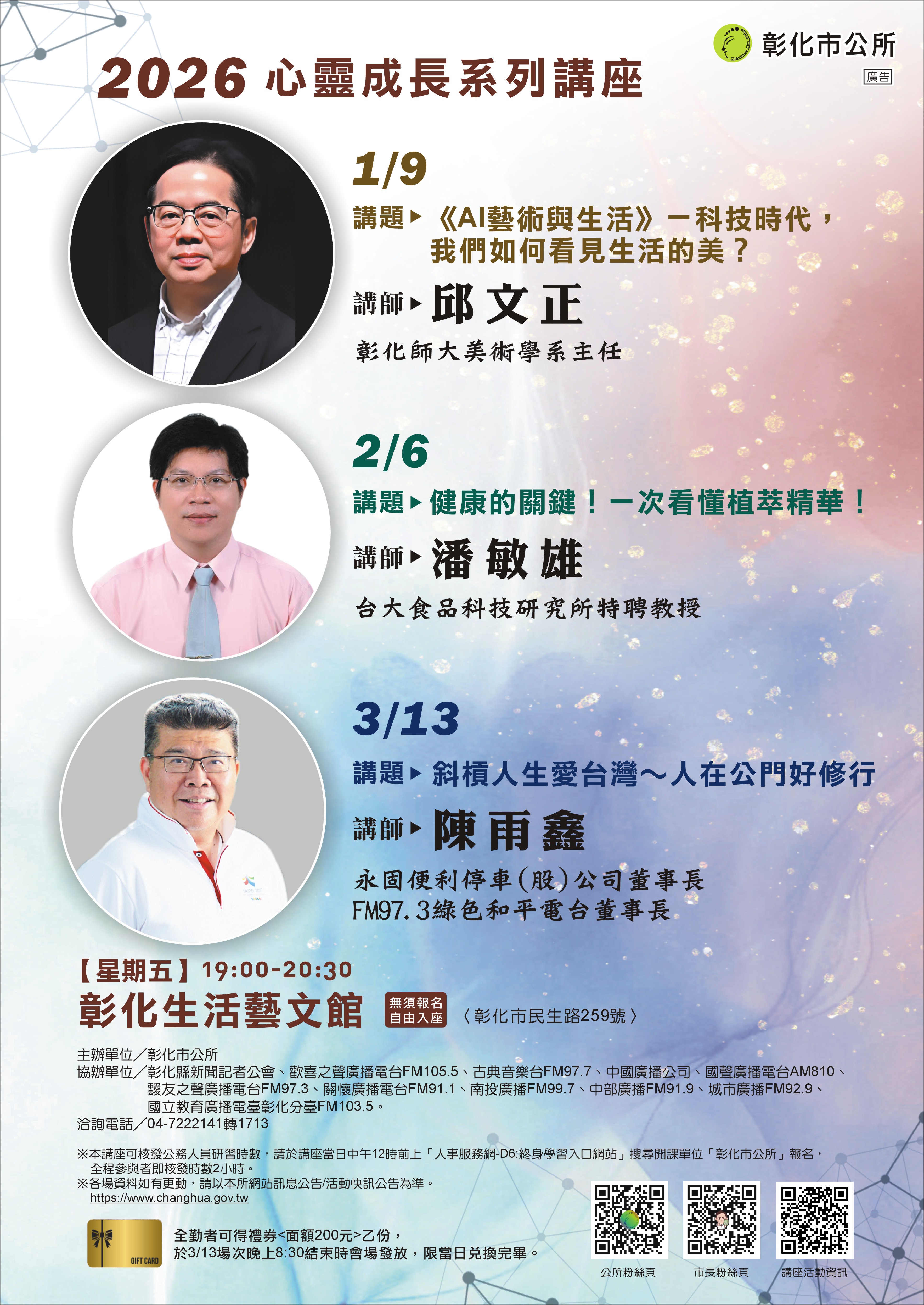 *各場資料如有更動,請以本所網站訊息公告/活動快訊公告為準。https://www.changhua.gov.tw