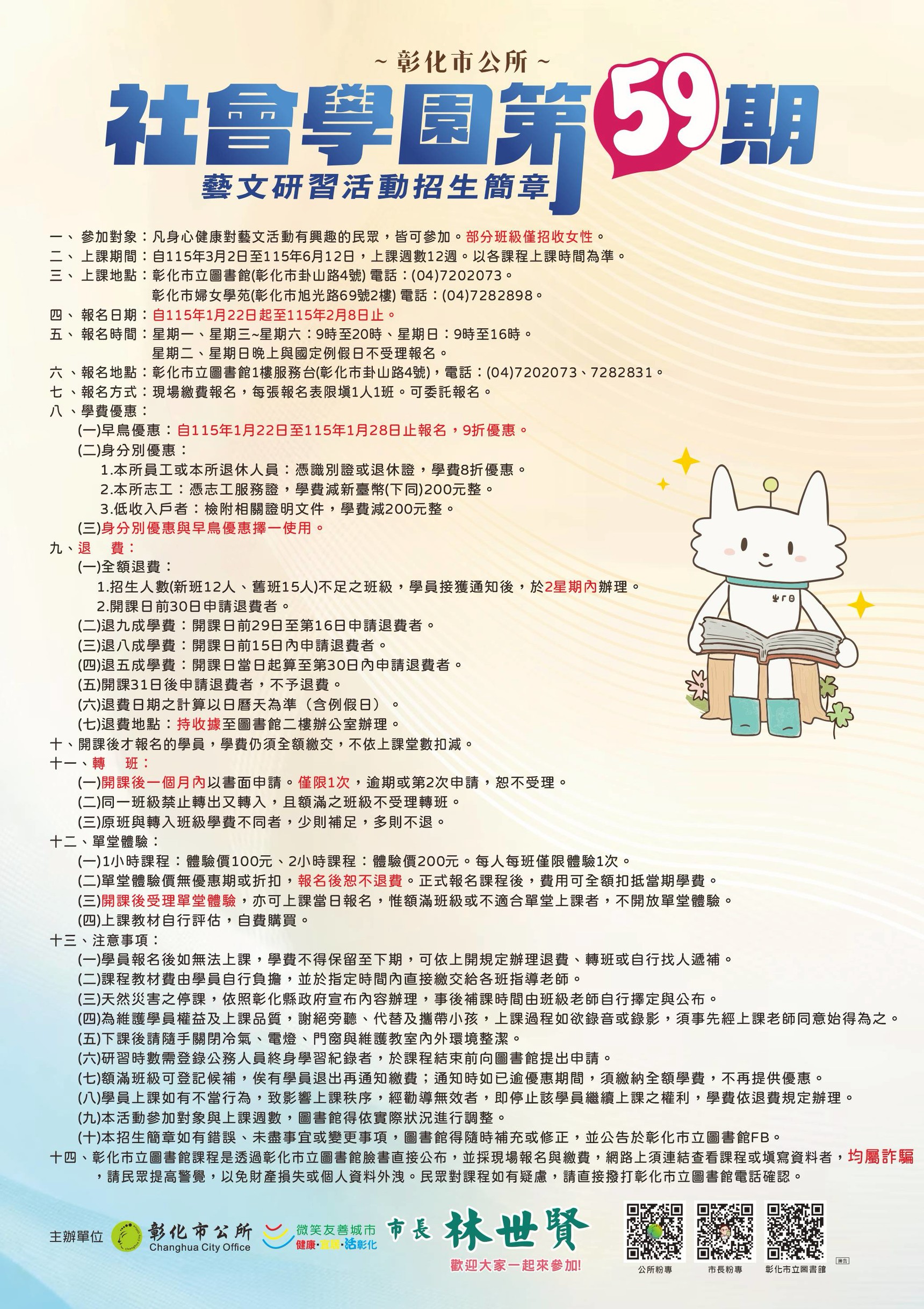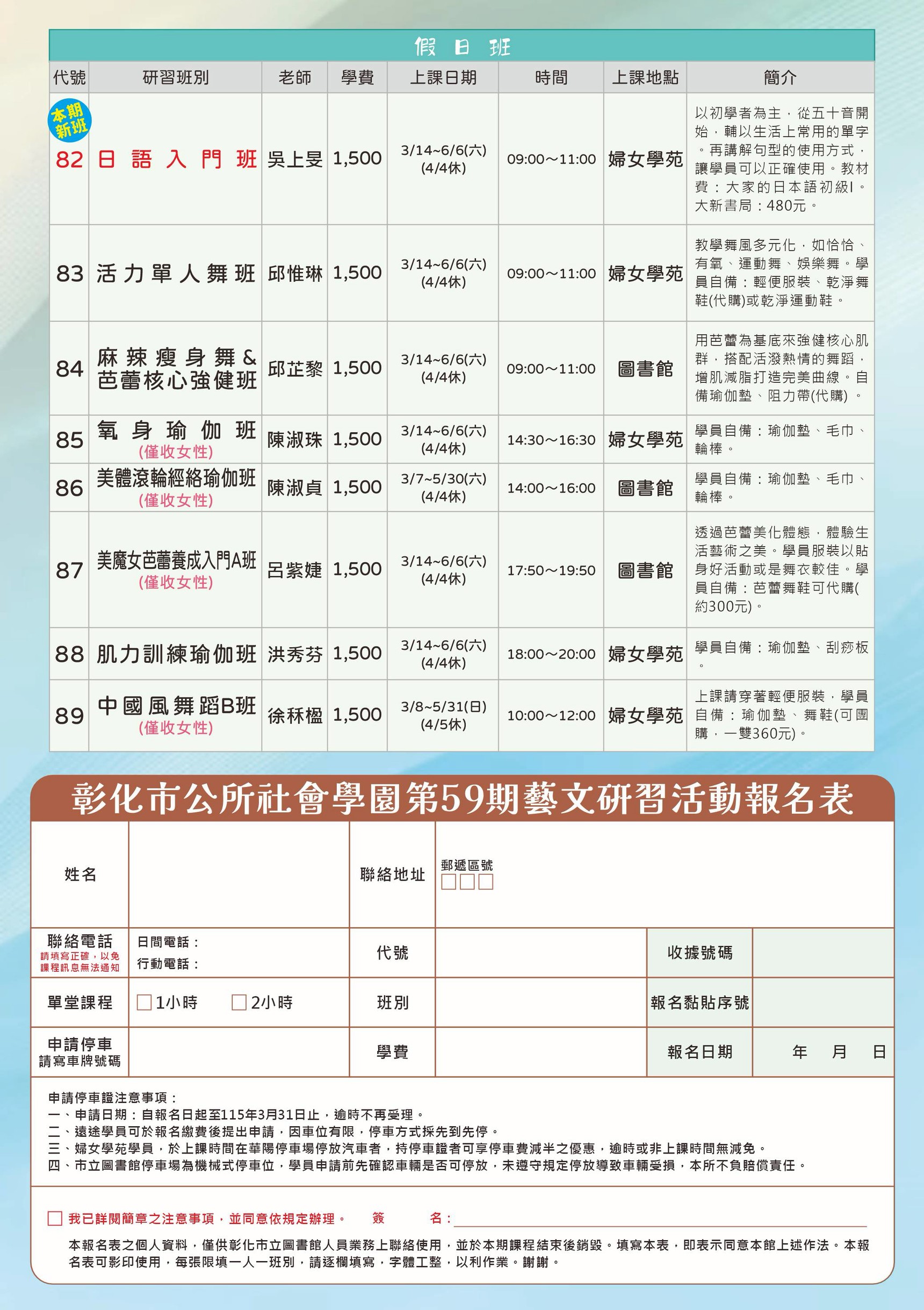 報名方式:親洽彰化市立圖書館 服務台,或電洽 (04)7202073、7282831