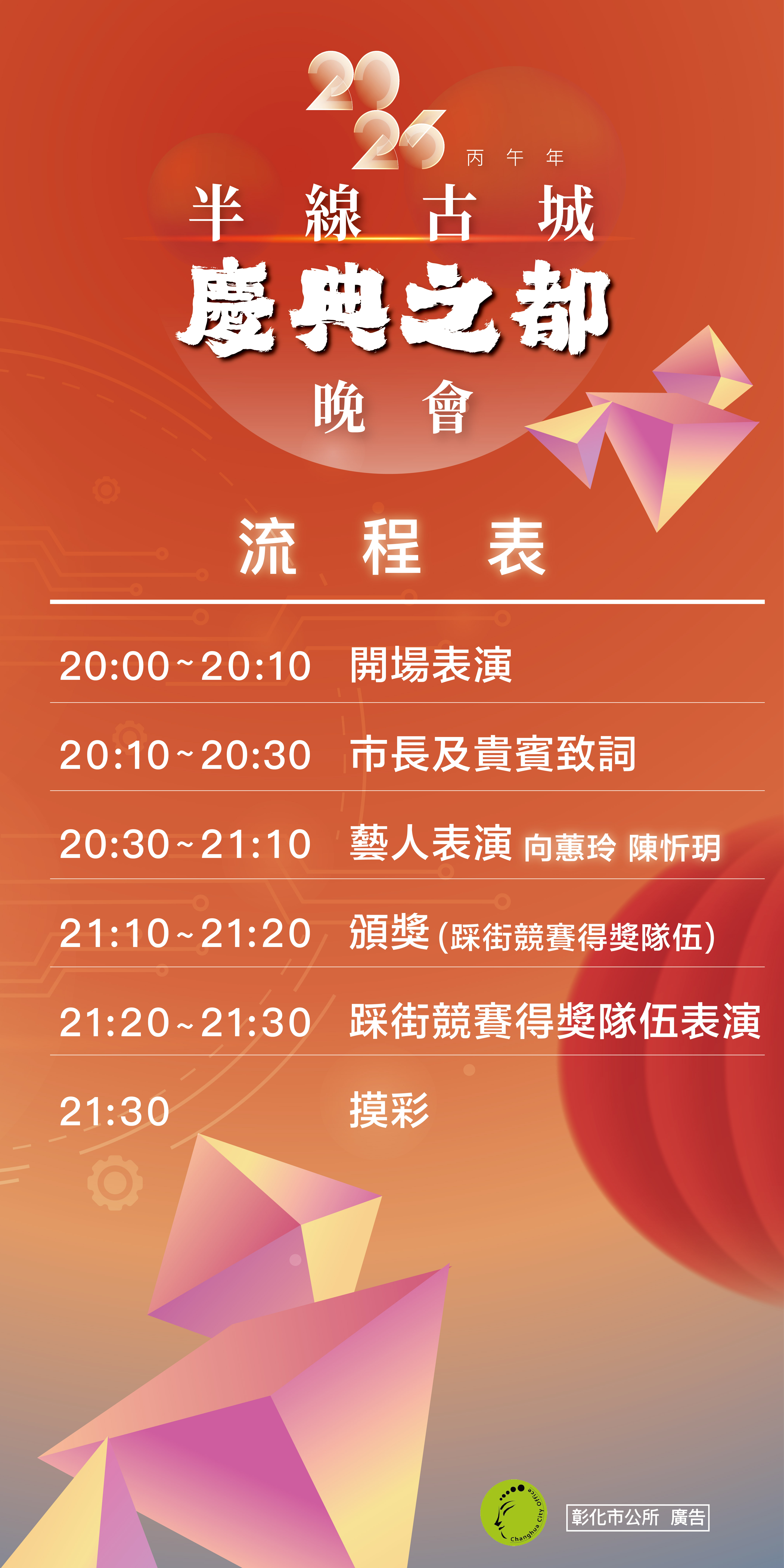 彰化古稱半線,自1,723年建城迄今已有300年歷史,匯聚留存各方信仰與活動,保有古城慶典的文化風貌。為迎接一年一度農曆春節,彰化市公所隆重推出2026 半線‧古城慶典之都系列活動,首先登場亮點彰化城活動,以各式主題燈飾點綴市區,讓來到彰化的遊客,感受到熱鬧迎春的喜氣。