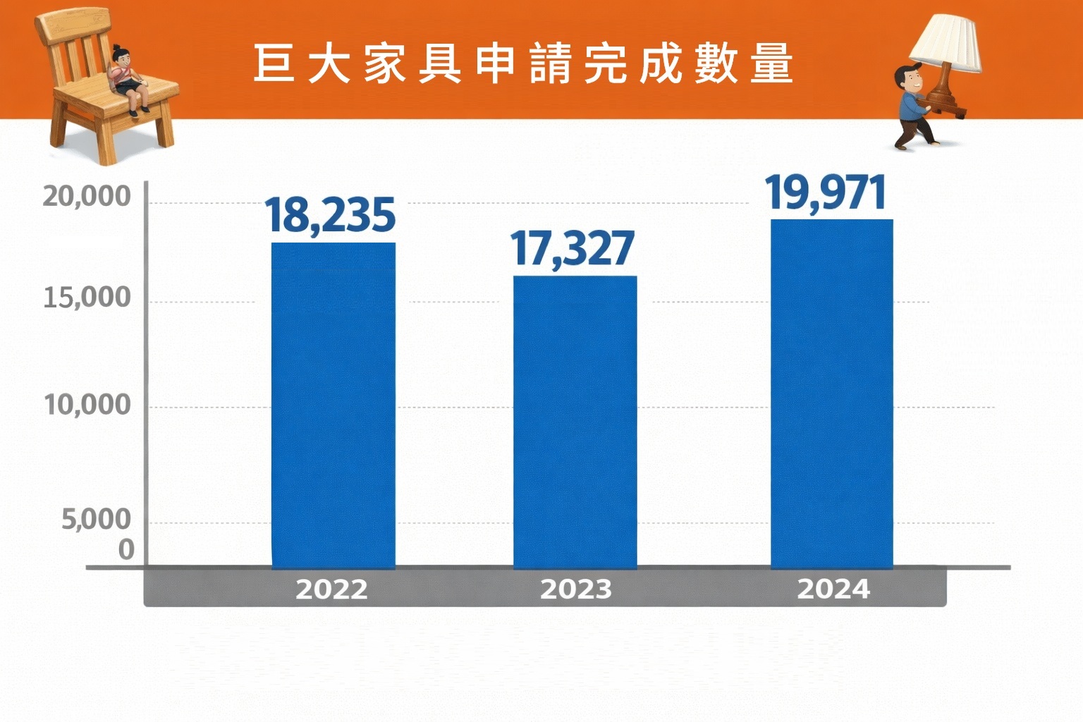 另一方面,隨著縣內多數鄉鎮已陸續實施縣府的統一收費標準,彰化市近年的大型家具清運量也逐漸增加,不排除有其他鄉鎮市民眾將家具搬來市區,透過親友代為申請清運的情形