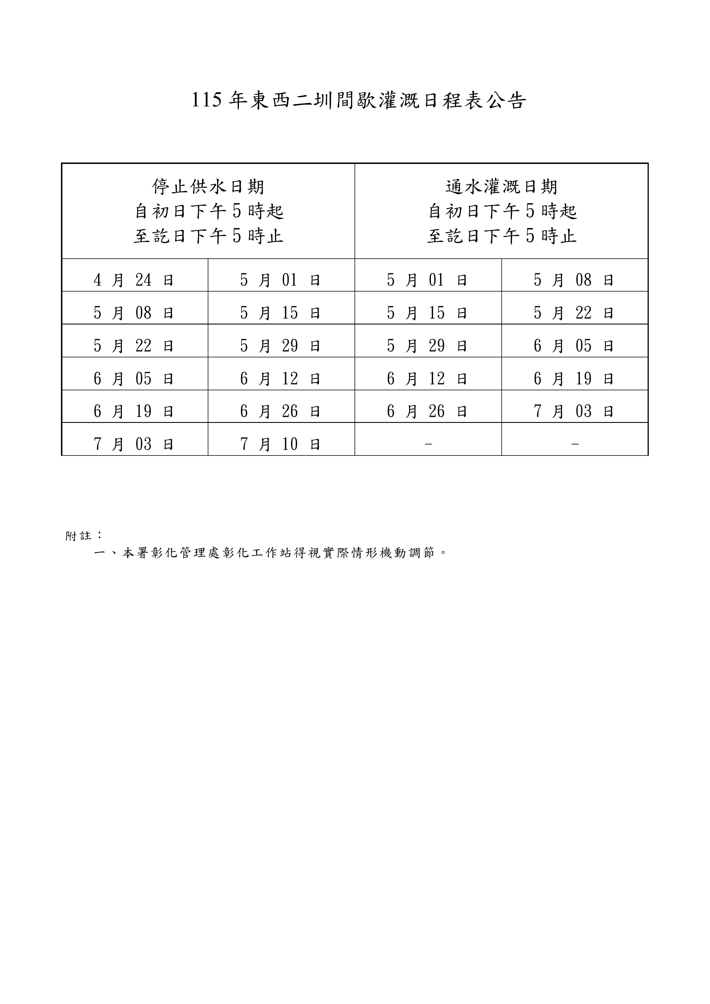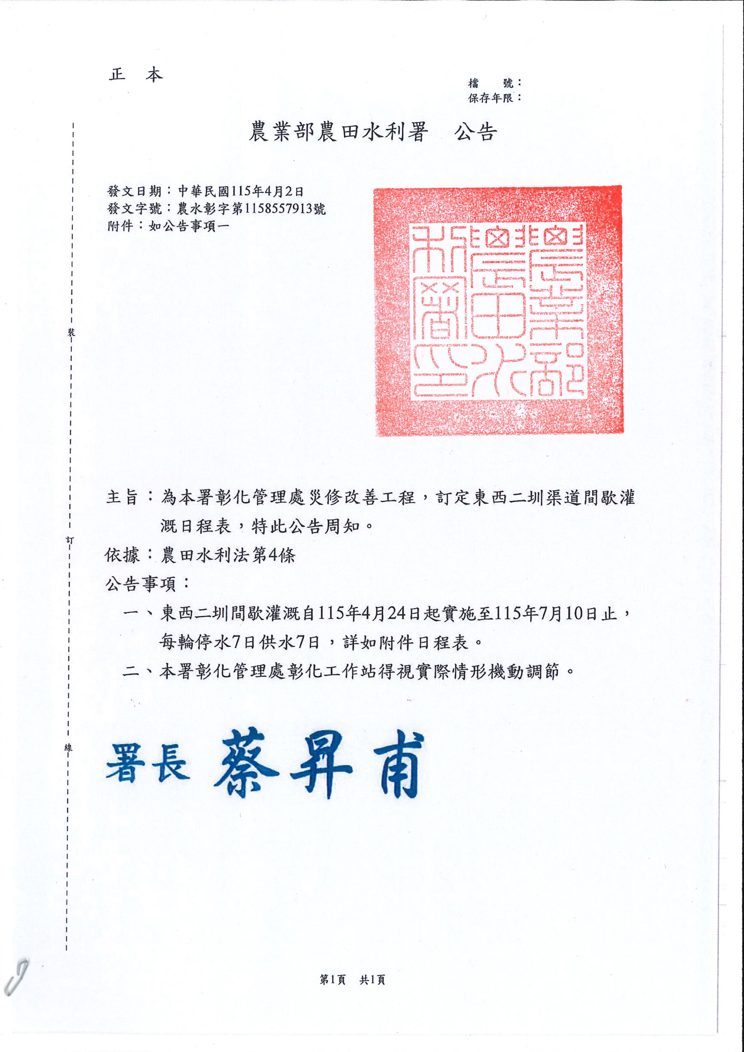 115年東西二圳間歇灌溉公告(4月24日起至7月10日止).pdf