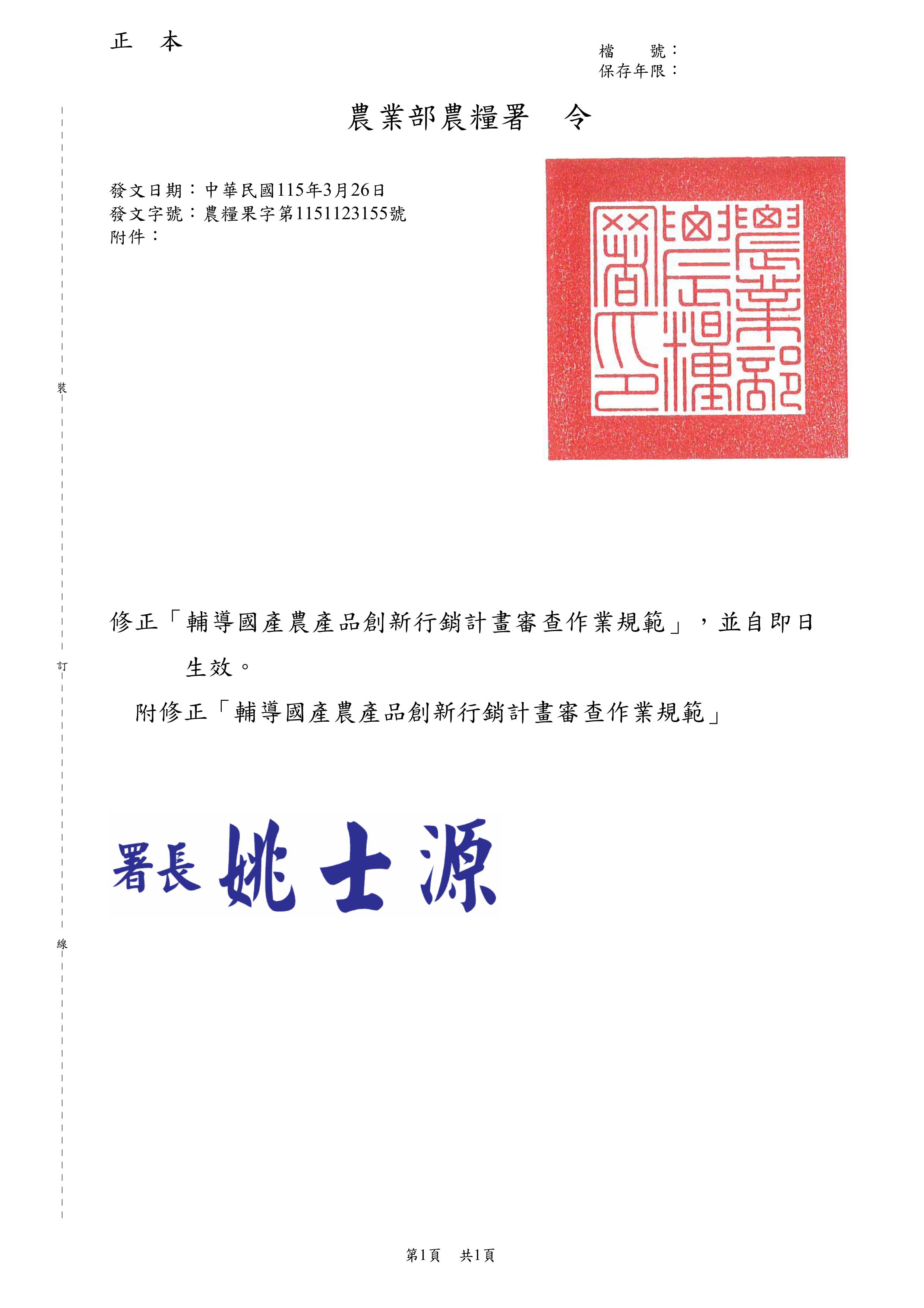 輔導國產農產品創新行銷計畫審查作業規範修正規定.pdf